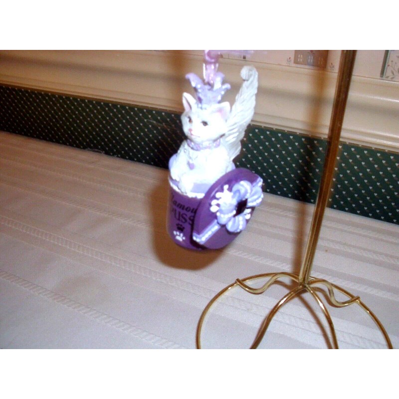 This is a Kurt Adler 3 4"."H Royal splendor purple & silver cat ornament. Glittered cat in a "Glamour Puss" box with a glittered purple crown and collar-Hangs from sheer purple ribbon.New.Shipping & handling $6.00. .Massachusetts residents add 6.25% sales tax. I accept payment through Pay Pal,. Check out my other items and save on shipping.
