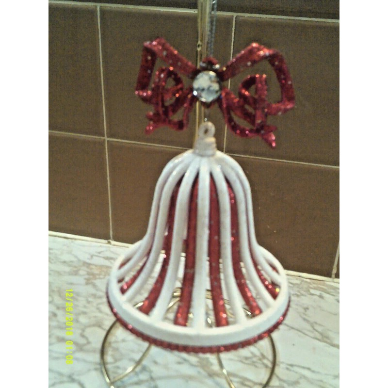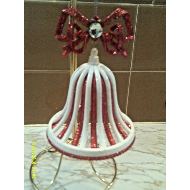 This is a Kurt Adler-5.5" white & red glittered Bell ornament with red glittered bell and bow, clear gemstone and clear dangle. Made of plastic. New -2023. Shipping & handling will be $6.50. Massachusetts residents add 6.25% sales tax.. I accept payment through Pay Pal, Check out my other items and save on shipping.