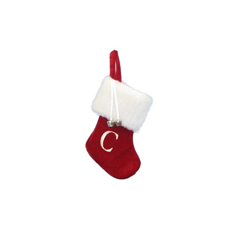 Kurt Adler 7" Red and White Monogram "C" Mini Christmas Stocking