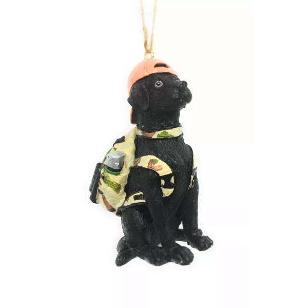 Black Lab Hunting Dog w Backpack Christmas Ornament
