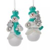 Kurt Adler Set of 2 Turquoise and White Snowman Ornaments E0663