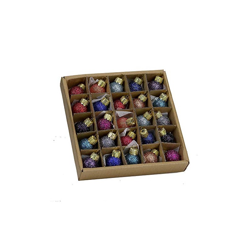 These 0. 78-Inch Glitter Glass Ball Ornaments, 25 Piece Set from Kurt Adler feature dainty ornament balls in glittery colors including shimmery shades of red, blue, silver, orange, pink, and purple. Perfect for showing holiday spirit when space is limited.