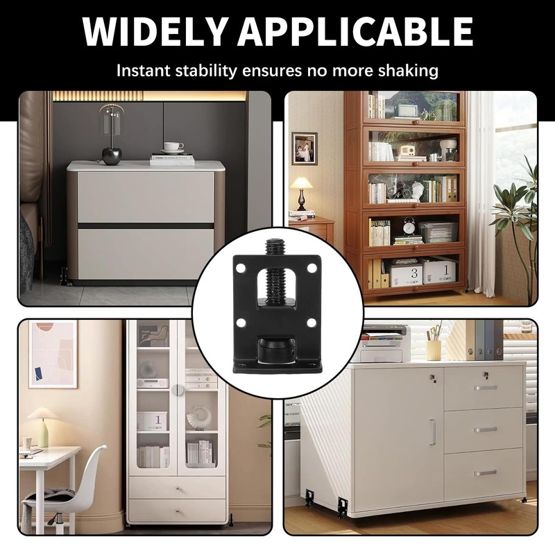 - Non-Slip Base: The sturdy base of each cabinet levelers features an advanced non-slip design, providing exceptional grip and stability across all floor surfaces—whether hardwood, tile, carpet, or laminate. This innovative construction effectively prevents shifting, sliding, or wobbling, keeping your furniture securely in place even during daily use.
