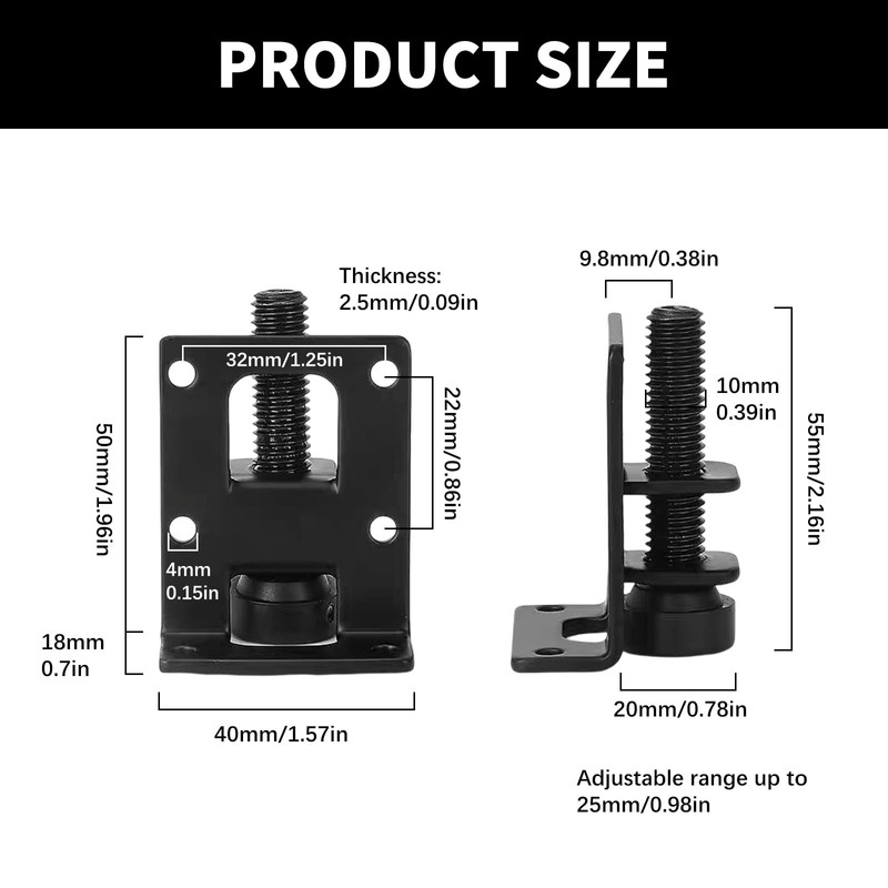 - Adjustable Design: These premium adjustable leveling feet feature a precision adjustable mechanism, enabling effortless customization of your furniture's height and stability for a perfectly balanced setup. The durable design of the adjustable feet ensures long-lasting performance, making it ideal for a variety of furniture types in home and office environments.