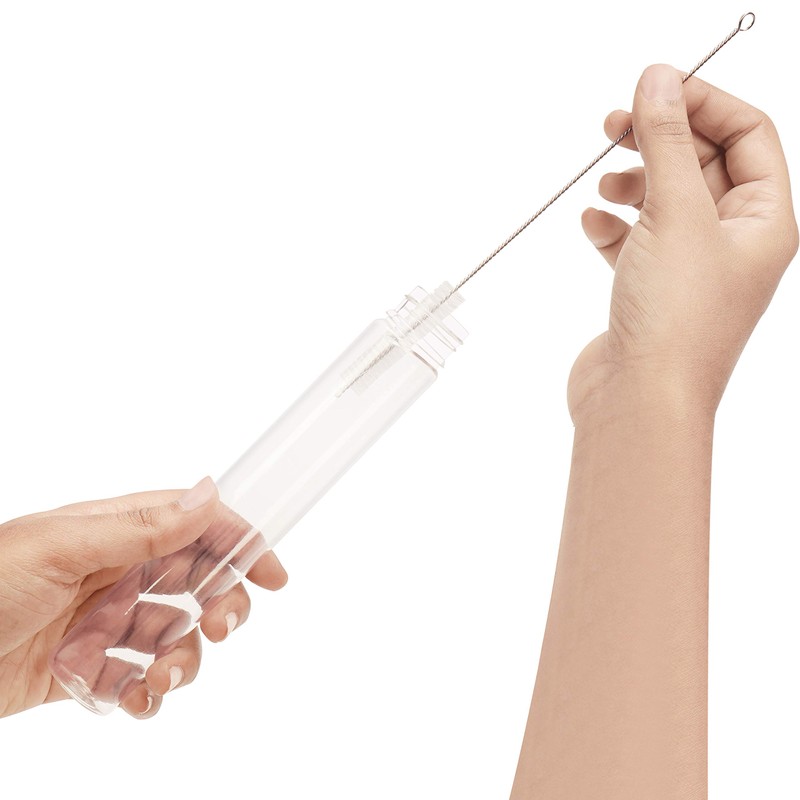 - 25 PACK OF CLEAR TEST TUBES: Included in our set are 25 plastic test tubes. Each test tube is 18.7cm (7.36 inches) in height, including the lid and 3cm (1.18 inch) in width. They have an opening diameter of 2.2cm (0.86 inch) and can hold 110ml of liquid. These containers feature an aluminium metal screw top lid which is non-spill. Our set also comes with a cleaning brush. Our test tubes can hold liquids, powder and solids.