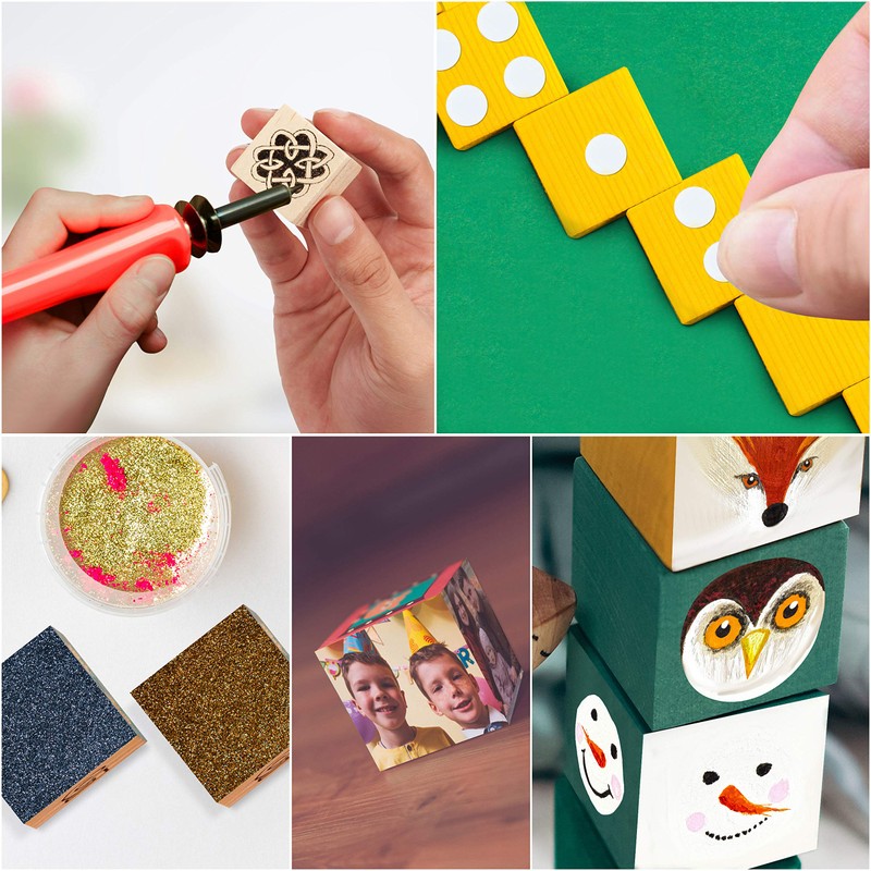 - CUBES FOR CRAFTING: These wooden blocks are perfect for a wide range of crafts and customisation. They can be used for 3D puzzle making, mounting stamps as well as wood burning. Each block can be left natural, stained, varnished, painted, wood washed, stamped or coloured.