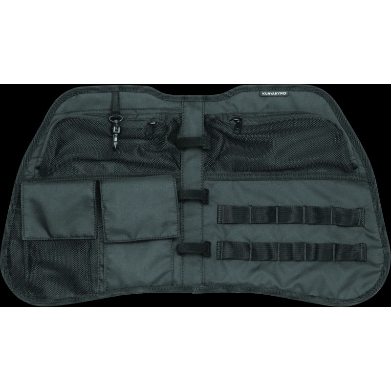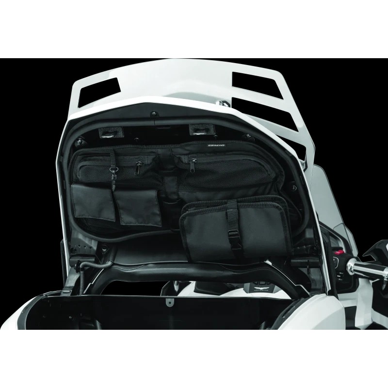 Eliminate clutter and keep your trunk from looking like a junk drawer with this handy and versatile lid organizer designed specifically for the new Gold Wing Tour trunk. Easily bolts onto the interior trunk lid with the included fasteners and reusing OEM hardware. Features a removable tool-roll and/or Dopp kit, large zippered mesh pockets and multiple smaller mesh pockets for optimal organization.This Part Fits: