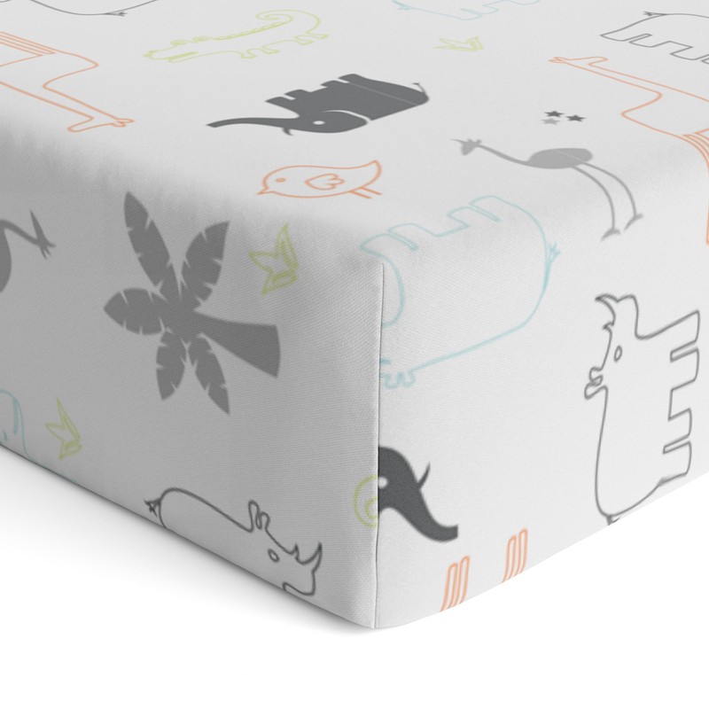 Kushies Baby 100% Breathable Cotton Percale Baby Crib Sheet, Fully Elasticized - Made in Canada 28" x 52" Multi Jungle Animal