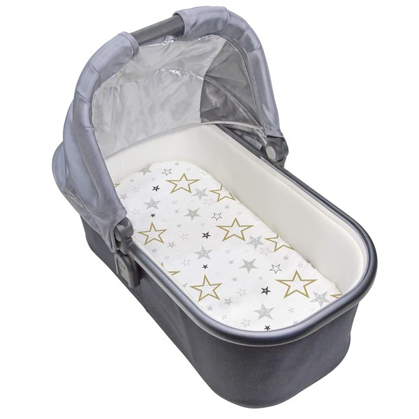 Kushies Baby 100% Breathable Cotton Percale Bassinet Sheet, Fully Elasticized- Made in Canada, 18" x 30" Multi Golden Star