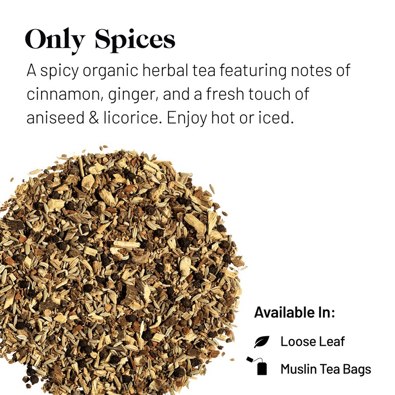 - ✅ EIN TEE VOLLER CHARAKTER: Only Spices macht seinem Namen alle Ehre, diese Mischung besteht zu 100% aus einer perfekt ausgewogenen Mischung schmackhafter, aromatischer und vollmundiger Gewürze aus biologischem Anbau! Wir haben die unwiderstehlichen Geschmacksnoten von Zimt und Ingwer mit der Frische von Anis und Lakritze kombiniert. Ein wenig Kardamom für seine Süße, während Fenchel, Pfeffer und Gewürznelken diesen Tee abrunden. Ein purer Genuss.