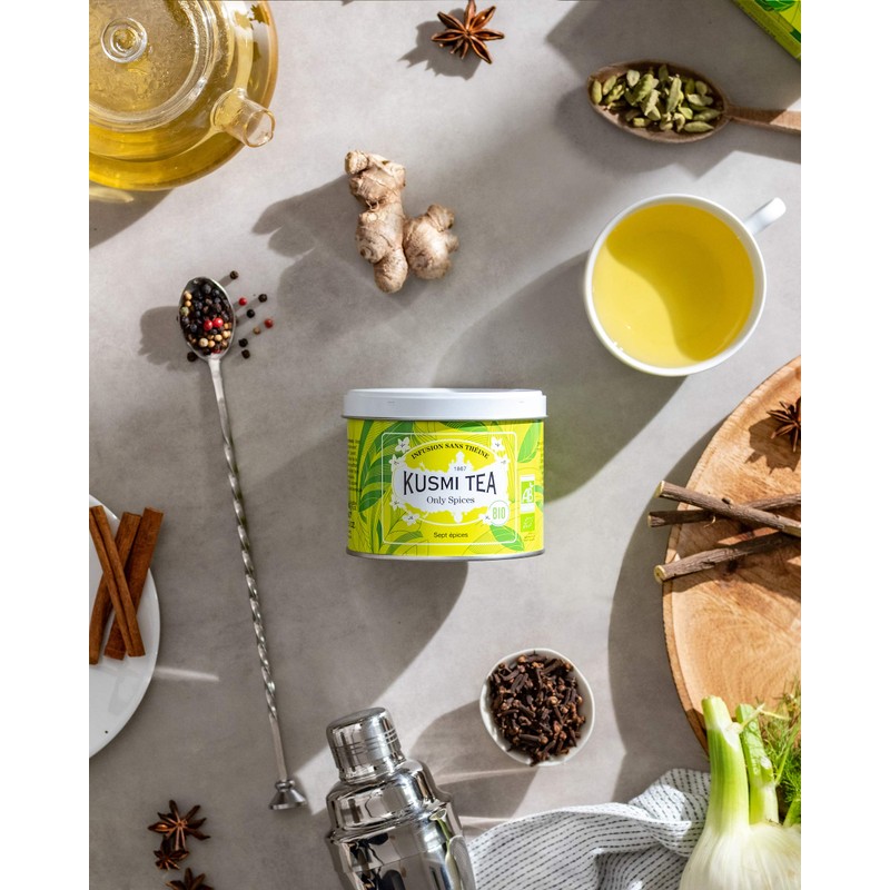 Kusmi Tea Only Spices Bio - Teemischung aus 100% Bio Gewürzen Zimt, Anis, Ingwer, Lakritz, Fenchel - Koffeinfreier Loser Tee - Gewürztee - 100 g Metall Teedose