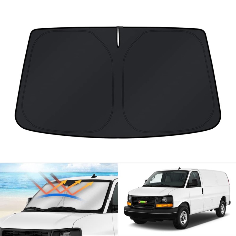 KUST Windshield Sun Shade for 1996-2024 GMC Savana Van Accessories, Passenger & Cargo Van Window Sunshade Sun Visor Protector Foldable Blocks UV Rays Keep Your Car Cooler