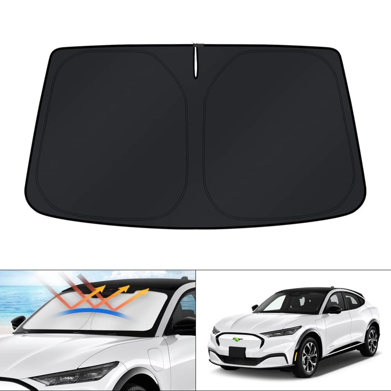 KUST Windshield Sun Shade for Ford Mustang Mach-E 2021 2022 2023 2024 2025 Mache Window Sunshade Sun Visor Protector Foldable Blocks UV Rays Keep Your Car Cooler