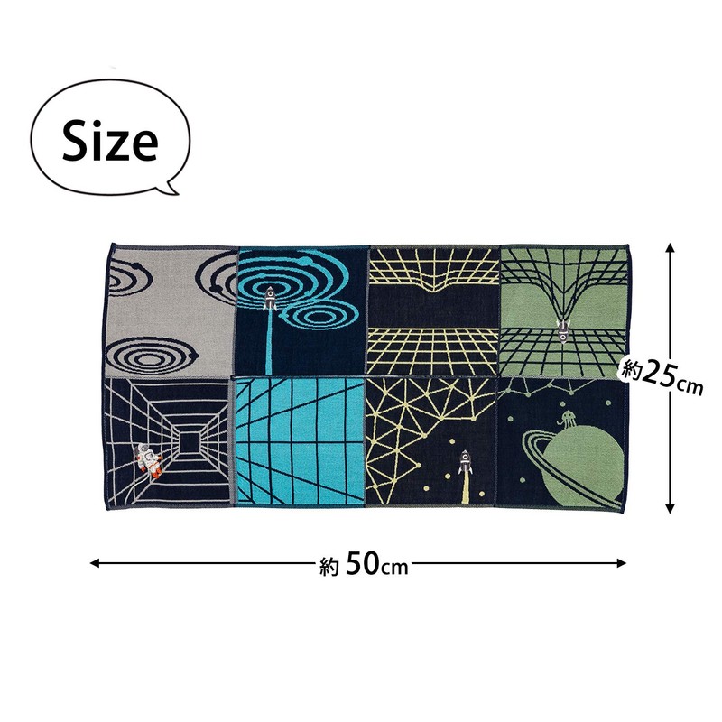 Kusuhashi Crest Weave Hand Towel, Navy & Green, Approx. 9.8 x 19.7 inches (25 x 50 cm), Hackerchief, Universe A-66768-85-KON