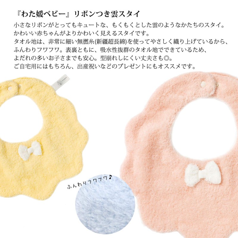 Kusuhashi Crest Woven Watahime Baby Clouds Style with Ribbon Yellow 80 Sizes 100% Organic Cotton 1-66276-90-Y