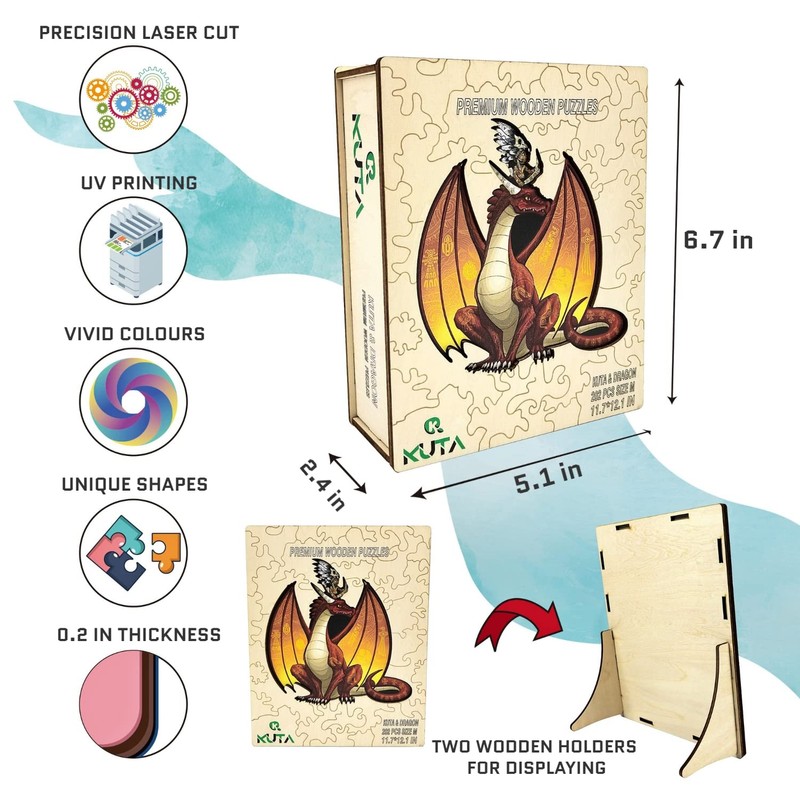 - 🌳【FANTASTIC WOODEN JIGSAW PUZZLE SET】 Enjoy a relaxing time with this KUTA&Dragon Puzzle (Size M 11.7*12.1 inches) with 202 unique shapes.