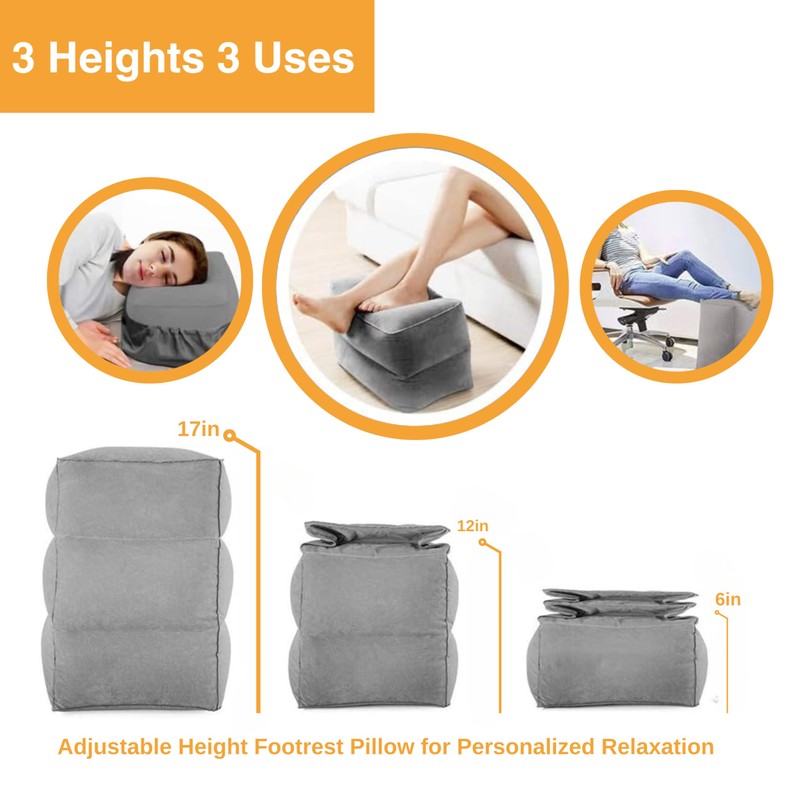 - π¨ ππππππππππ πππ ππππππππππ ππππππ: Our Leg Elevation Pillow features three adjustable heights (17", 12", and 6"). Perfect for use as a foot stool in the office or as a convenient bed extension for kids in cars and airplane . The uniform heights align seamlessly with car seats, providing a comfortable and adaptable solution for various settings