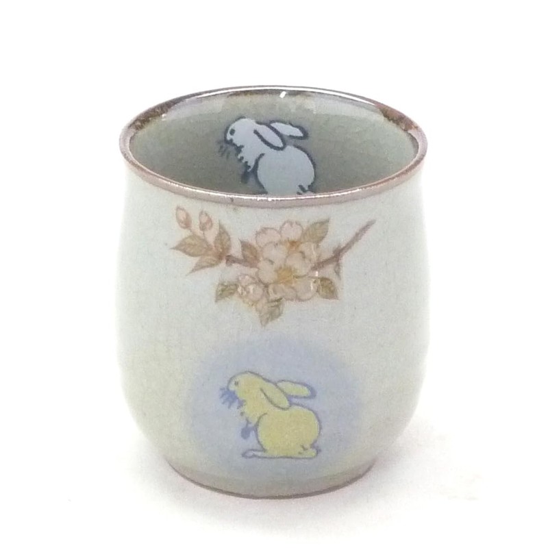 Kutani Ware [Drinking Cup] Large White Rabbit Weeping Cherry Blossom [Inner Back Picture]