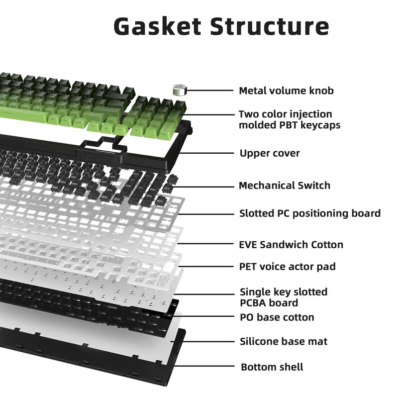 - [Mechanical Keyboard Structure]:KY95 PC keyboard features padded construction, integrated silicone pads and PCB single keyway for enhanced flexibility and stability, softer, and reduced noise; non-slip feet and adjustable foot support on the bottom; provides stable and comfortable typing sound and a solid feel