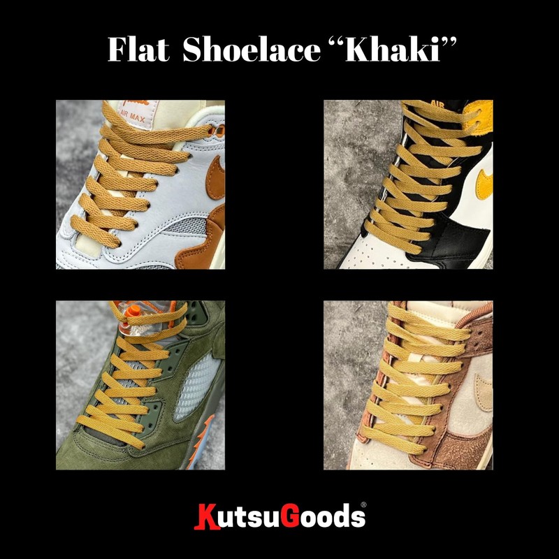 KutsuGoods Flat Shoelaces, Carefully Selected Materials, 39.4 inches (100 cm), 47.2 inches (120 cm), 55.1 inches (140 cm), 63.0 inches (160 cm), Width: 0.3 inches (8 mm), Khaki