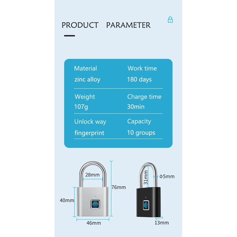 KUTYU FM-570 Intelligent Biometric Smart Waterproof Fingerprint Keyless Anti-Theft Security Padlock, Silver