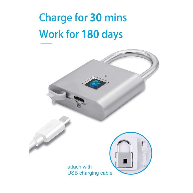 KUTYU FM-570 Intelligent Biometric Smart Waterproof Fingerprint Keyless Anti-Theft Security Padlock, Silver