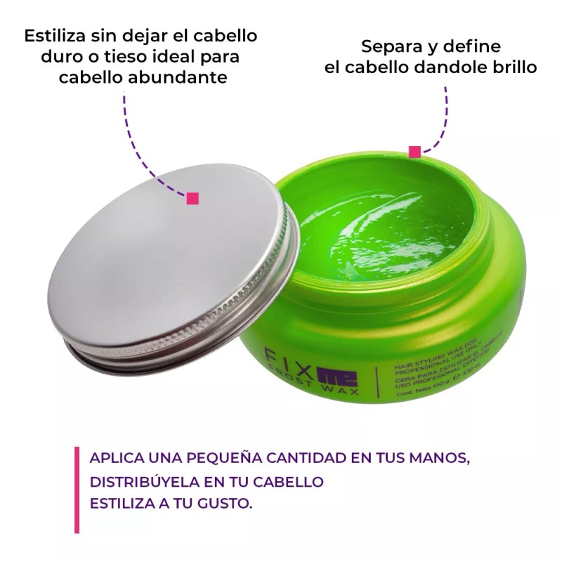 Aplica la cera en tus manos y frótalas para suavizar. Aplica sobre el cabello seco y limpio, estiliza como desees.