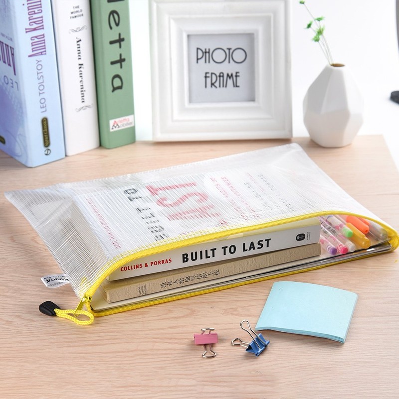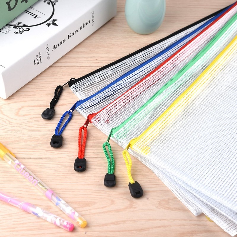 KUUQA 5 PCS A4 Plastic Mesh Zipper Bags Mesh File Bags Waterproof Zipper File Bags Multicolor