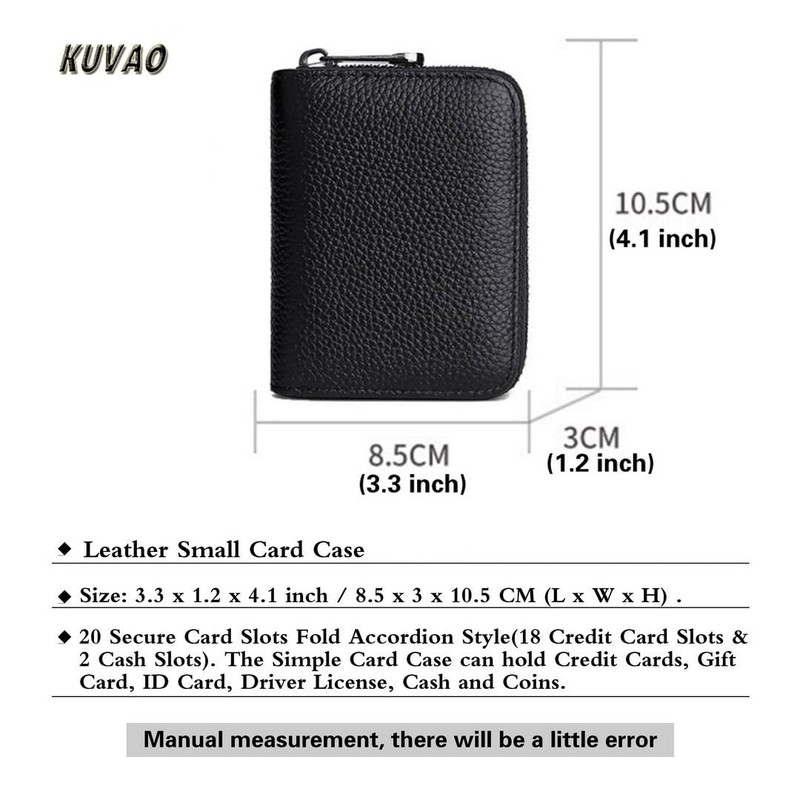 KUVAO RFID Blocking, 20 Card Slots Credit Card Holder Leather Small Card Case for Women or Men Accordion Wallet with Zipper (Blcak)
