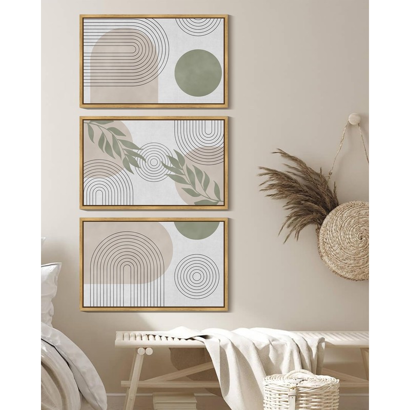 KUVIOKE Green Boho Framed Wall Art Modern Botanical Wall Printing Neutral Geometric Prints Bohemain Sage Decor Ready to Hang 16x24in (Natural Framed)