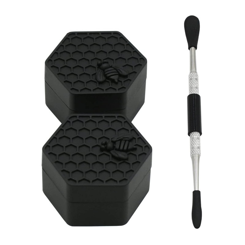 KUVIS 26ml Hexagon Silicone Containers Non-stick Jars with Carving Tool (Black)