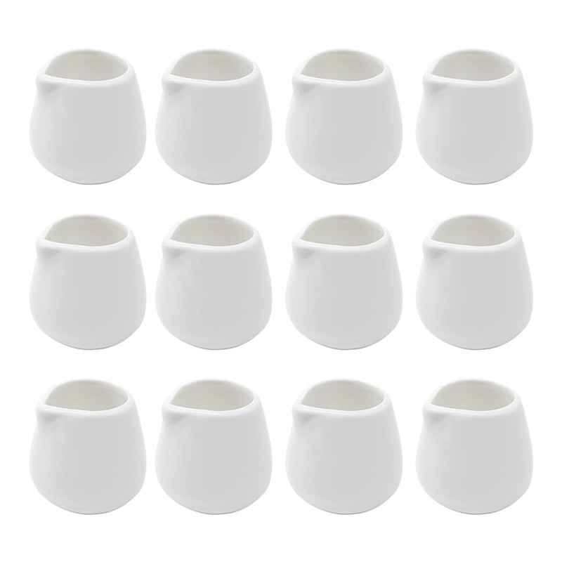 KUWUNG 12 Pcs Small Milk Jug, 50ml White Ceramic Milk Jugs, Small Gravy Jug, Mini Creamer Jugs Without Handle Sauce,Custard Jug, Mini Coffee Milk Jug, Small Milk Pouring Jug for Milk Coffee Tea Sauces