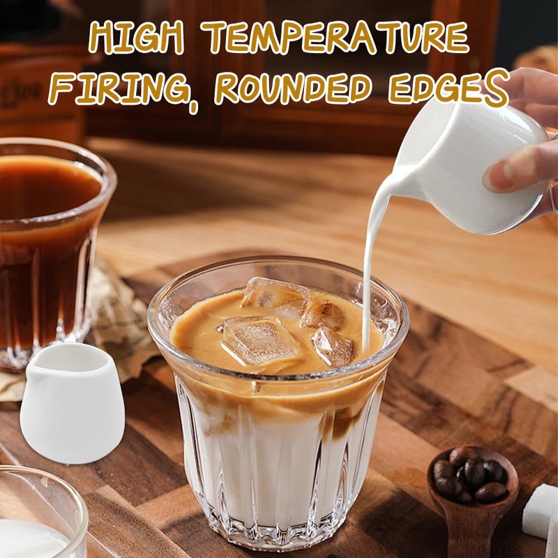 - 【Widely Use】The white small milk jug is a versatile container for a variety of occasions, mini milk jug can be used in cafes, restaurants, parties, afternoon tea, mini milk jugs can be used to hold coffee, milk or tea and heated or refrigerated as needed, small milk jugs can also be used to hold condiments or sauces.
