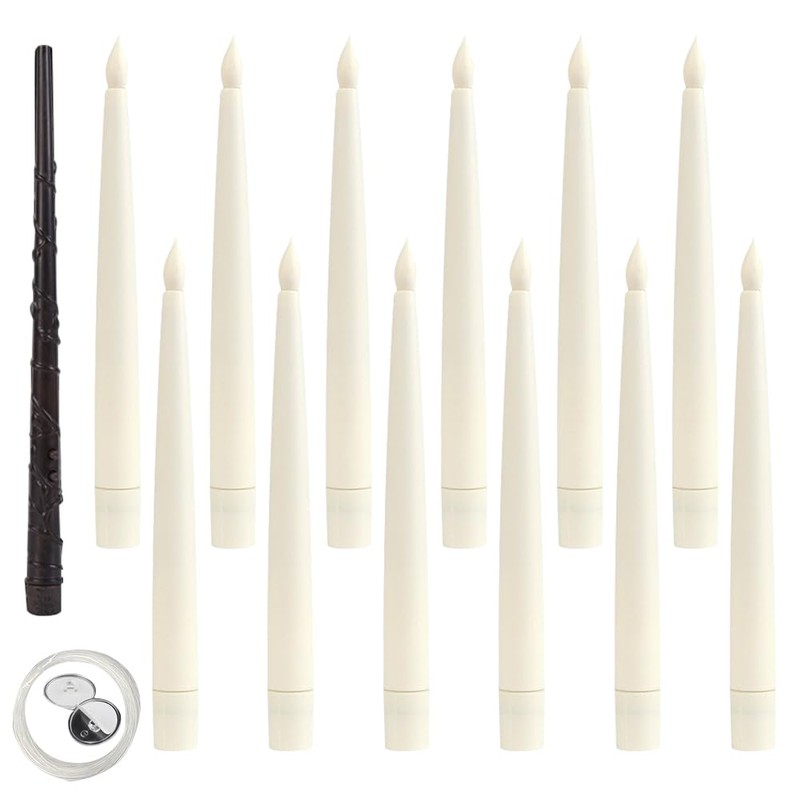 KUWUNG Floating Candles with Wand Remote, 12Pcs LED Tapered Candles with Remote Control and Timer, Hanging Floating Candles with Wand Remote for Home Halloween Christmas Decorations