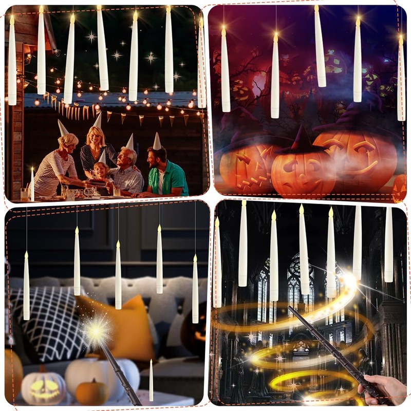 - 🌟【Magic Floating Candle】Floating Candles and Magic Wand Remote Controls add colour to the décor, use the Magic Wand to press the on button and the hovering candles will instantly light up for more fun in the wizarding world.