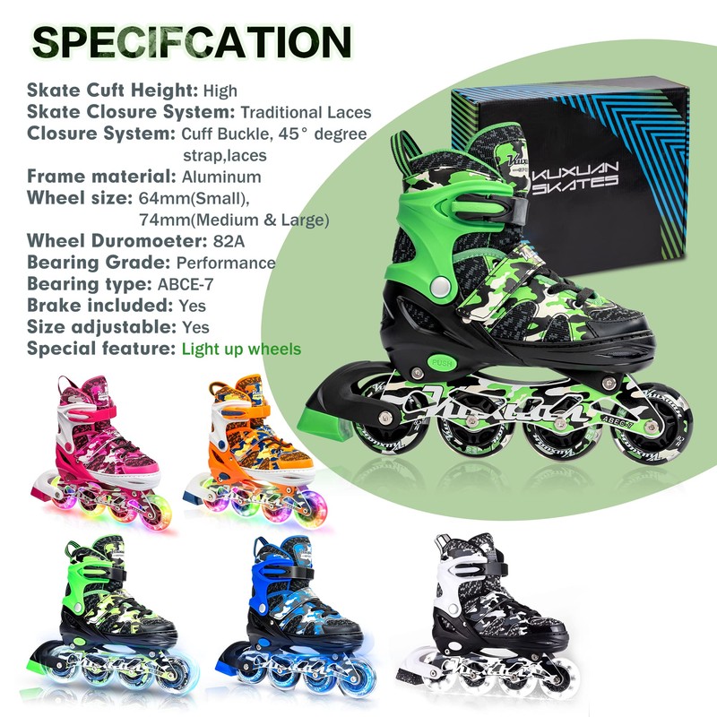 Kuxuan Skates Adjustable Inline Skates for Kids and Youth with Full Light Up Wheels Camo Outdoor Fun Illuminating Skates for Girls and Boys Beginner