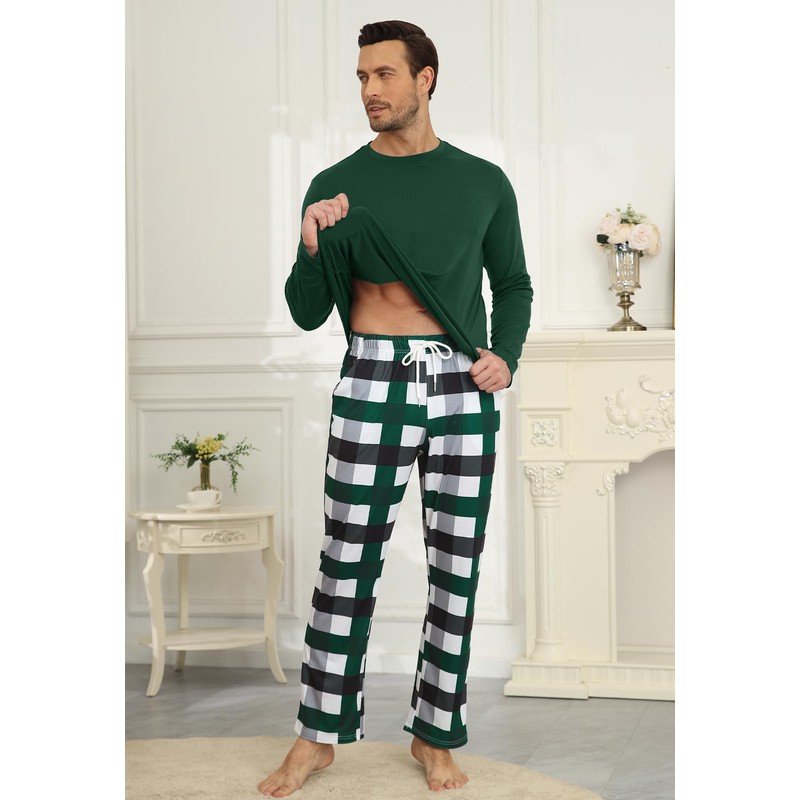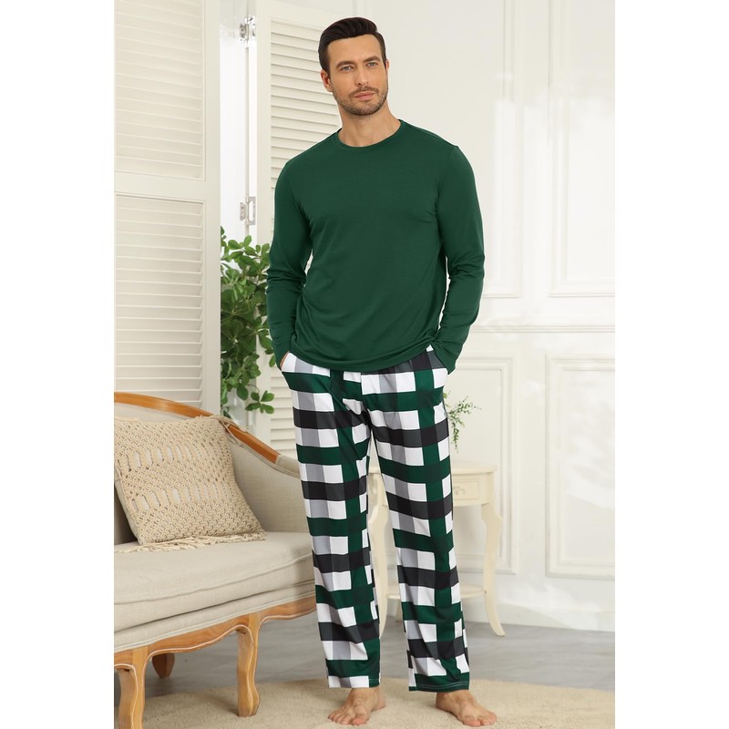 - Functional Design Details: Features long sleeve crew neck top with matching plaid trousers containing elastic waistband and dual pockets. Mens pjs sets combine practical storage with classic sleepwear aesthetics