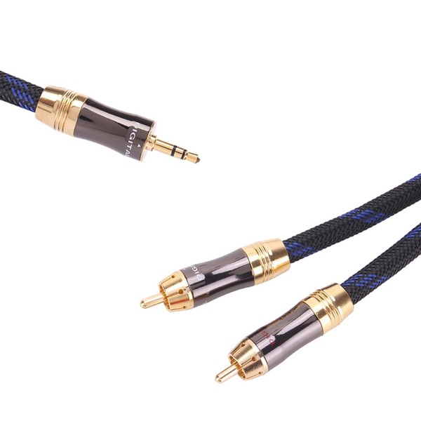 - 1.3.5mm plug to 2RCA plug 2.24K GOLD PLATED CONNECTORS: Corrosion resistant gold plating minimizes interference. 3.Durable nylon mesh jacket protects cable from permanently damaging the OFC core from accidental bent. 4.Oxygen-free copper provide maximum's conductivity and durability. 5.Connect your Cell Phone, IPod, MP3 player, Tablet or PC to your home audio system