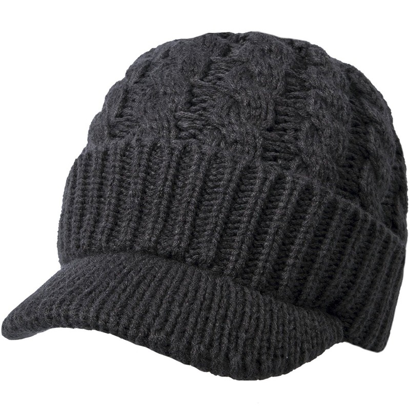 KUYOU Unisex Knitted Beanie Cap Winter Cap Hat with Peak, darkgray