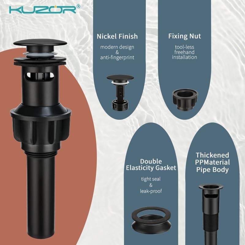 Choose KUZOR for your bathroom sink drain needs and experience the difference that high-quality materials and thoughtful design can make. Elevate your home with our premium pop up drain β where elegance meets efficiency!