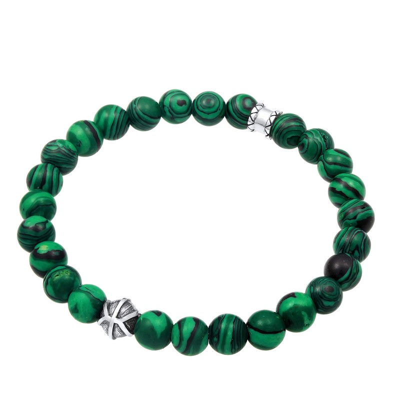 - The stretchy men's pearl bracelet with green beads made of natural stones has a diameter of 8 mm