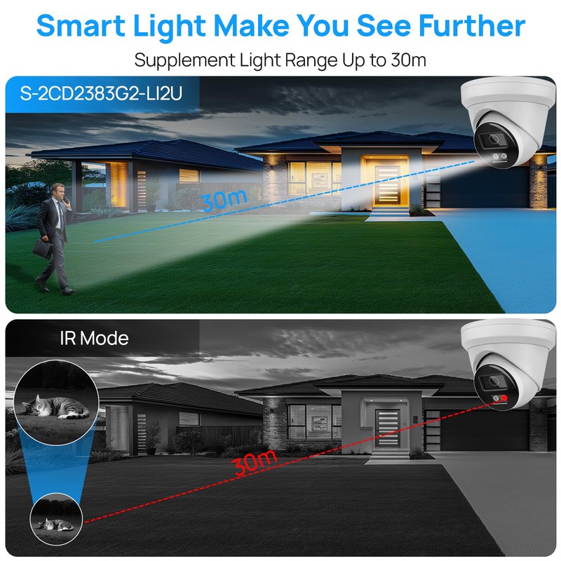 - Smart Hybrid Light: Integrates IR and White lights, 4 supplemental lighting modes