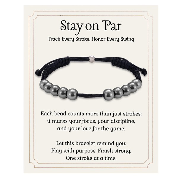 - Golf Stroke Counter Bracelet: Designed with movable Hematite beads, features 10 beads for simple and accurate golf round score tracking, ensuring you never lose count - no need to carry a scorecard or pencil! Each bead represents one stroke, helping you stay focused on your game, making it a practical and fashionable accessory for golf lovers