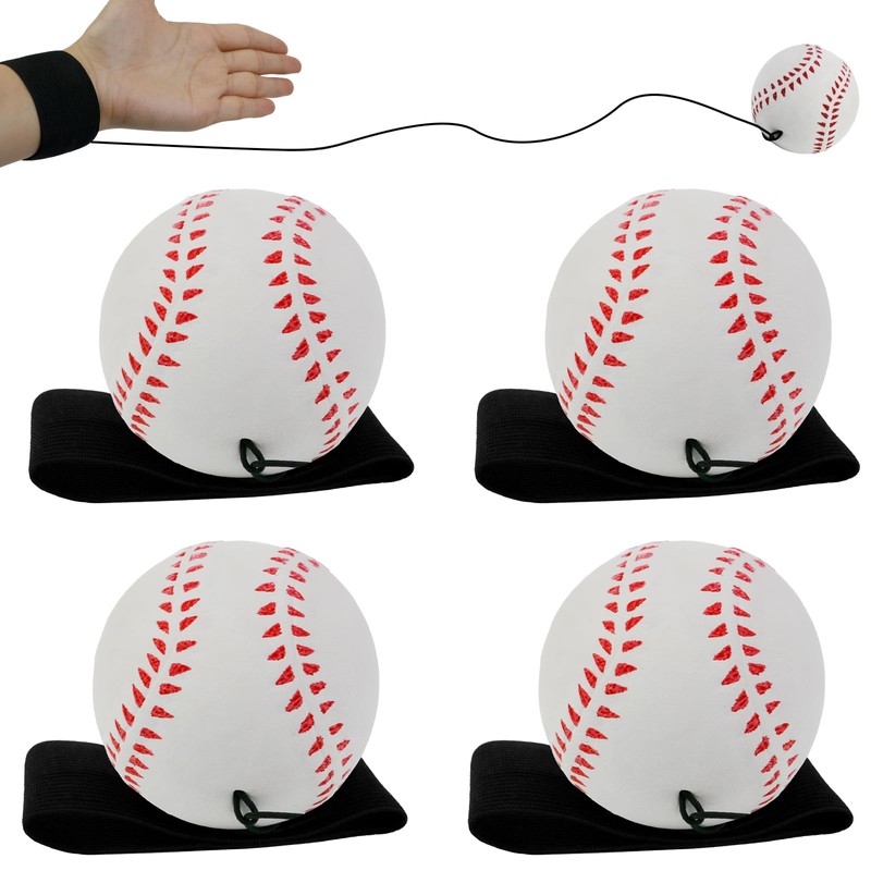 Kvittra Wrist Return Ball, 6cm Rubber Rebound Ball Return Balls with Strap, Retractable Ball Rubber with String Elastic String Ball Wrist for Wrist Exercise Play (Baseball)
