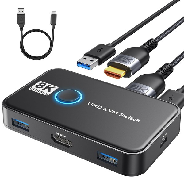 - 【Ultra HD 8K@60Hz Visual Enjoyment】KVM Switch 1 monitors 2 computers supporting resolution 8K@60Hz, make image display 3D and more exquisite and realistic,color is more bright and moving,really give a feast for your eyes. Of course, it also support 4K@30Hz and4K@60Hz or lower resolution