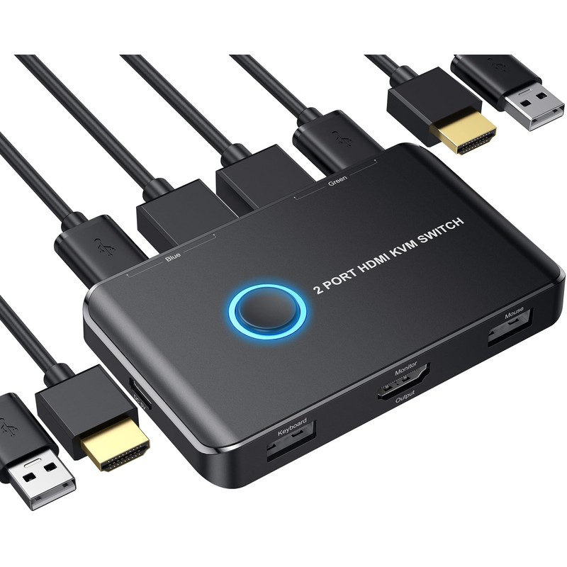 - 【USB KVM HDMI Switch】This HDMI KVM Switch allows you to control 2 computer with only one set of controls(Monitor,Mouse,Keyboard and Printer).You can easily switch between two displays.Makes your work and life much more simple and efficient.LED light color(Green or Blue) indicating the active computer.