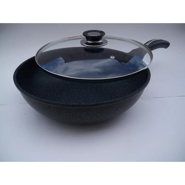 KW Ceramic Marble Coated Cast Aluminum Non Stick Wok With Glass Lid 24 CM