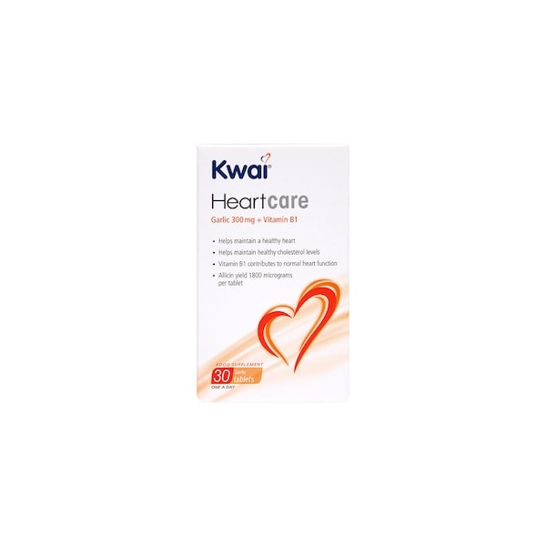 Kwai One-A-Day odour free highly concentrated garlic tablets which contain vitamin B1 and 300mg of garlic to help maintain healthy levels of cholesterol and help keep your heart healthy. Each tablet is coated for odour control.