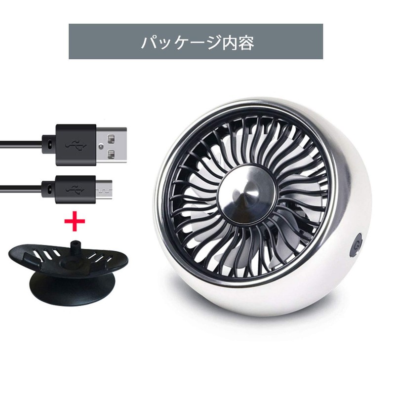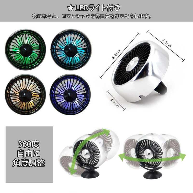 Kwak's Car Fan, For Tabletop, Air Conditioner, Dual Use, Angle Adjustable, LED Light, For Summer, Strong Airflow, Energy Saving, Small, USB Fan, 12 V, 24 V, Universal Use (Silver)
