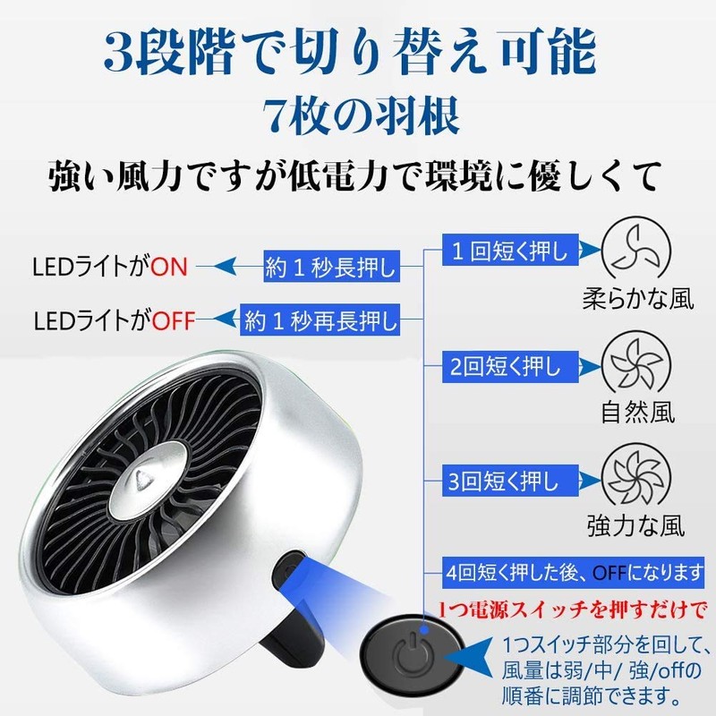 - Strong wind power: 7 blades, strong wind power, but low power consumption, environmentally friendly, and super energy saving. What's more, the air flow volume can be adjusted in 3 stairs, so you can freely adjust the wind you want. Can be used together with an air conditioner and a fan to further improve the cooling effect of the air conditioner, and the air circulation in the car makes it more comfortable